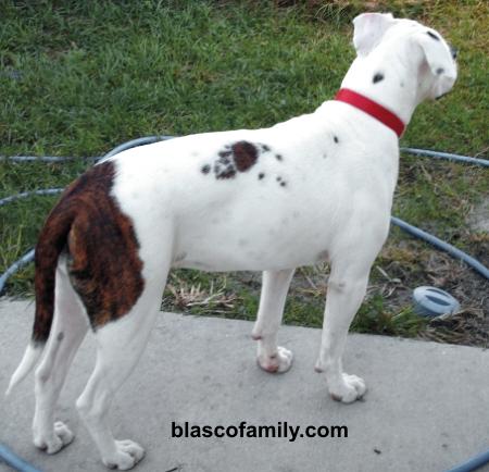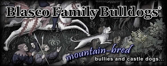 I wish Doc would have still been here, in the frame with his son Nacho, and his mom Bella. Nacho is a truly fantastic son of Doc, casting his dad's and grand mother Bella's genes into generations of Blasco Family Bulldogs© to come, but my Doc dog would have been in this picture too, if there weren't wild roses growing over his grave as I write. |