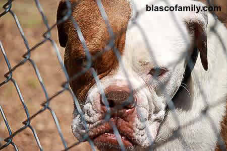 This is Walker's Cherry Bomb, purchased from Walker's American Bulldogs, Silver Creek, Georgia. The term "old school" may be played out, but when it fits, it fits, and Cherry is truly a very old school Johnson American Bulldog girl. From her zero fat, pure muscle frame, to her VERY bully head and body type, to her tenacious, no nonsense bulldog attitude, paired with a love for children, Cherry is the epidomy of a proper Johnson girl - fantastic structure too! |